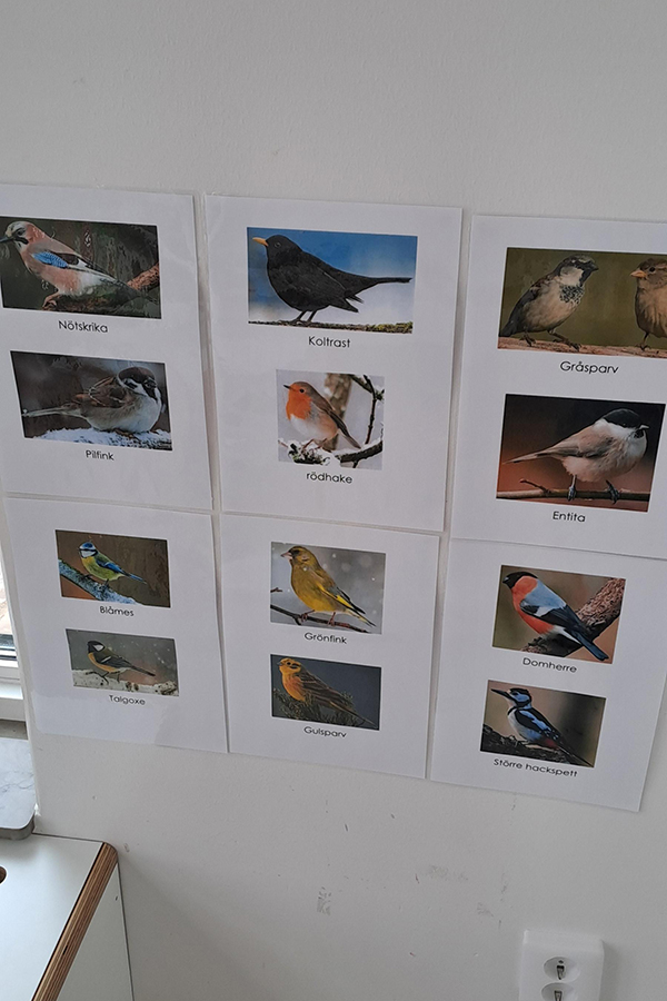 Idag känner barnen igen flera av vinterfåglarna och kan artbestämma dem. Samtal om vilka fåglar som syns på gården och under promenader i närliggande parker har blivit en naturlig del av vardagen.